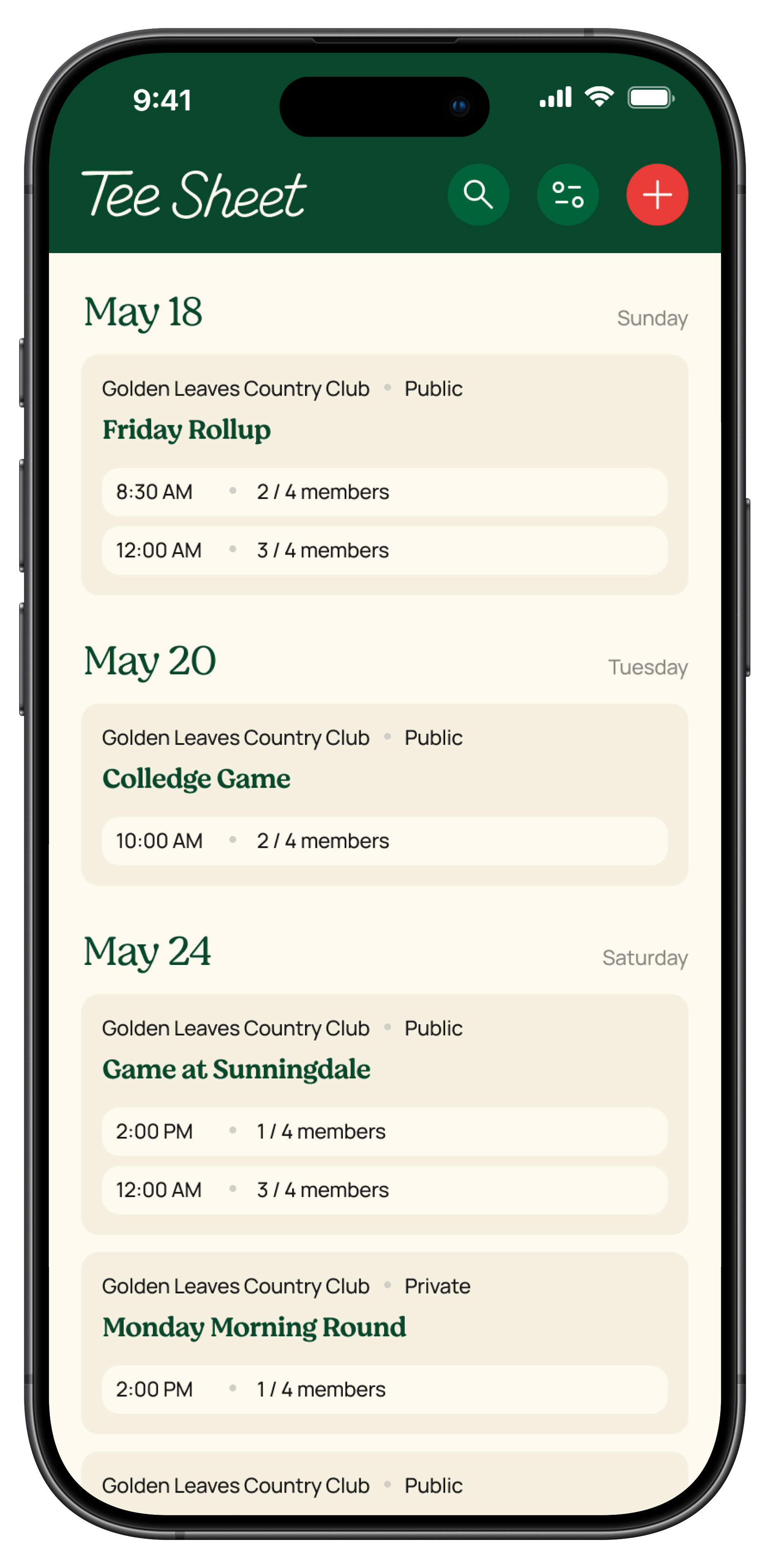 Your Tee Sheet is your personal calendar inside the app, showing every round you’ve booked, every upcoming event, and even your friends’ scheduled tee times.